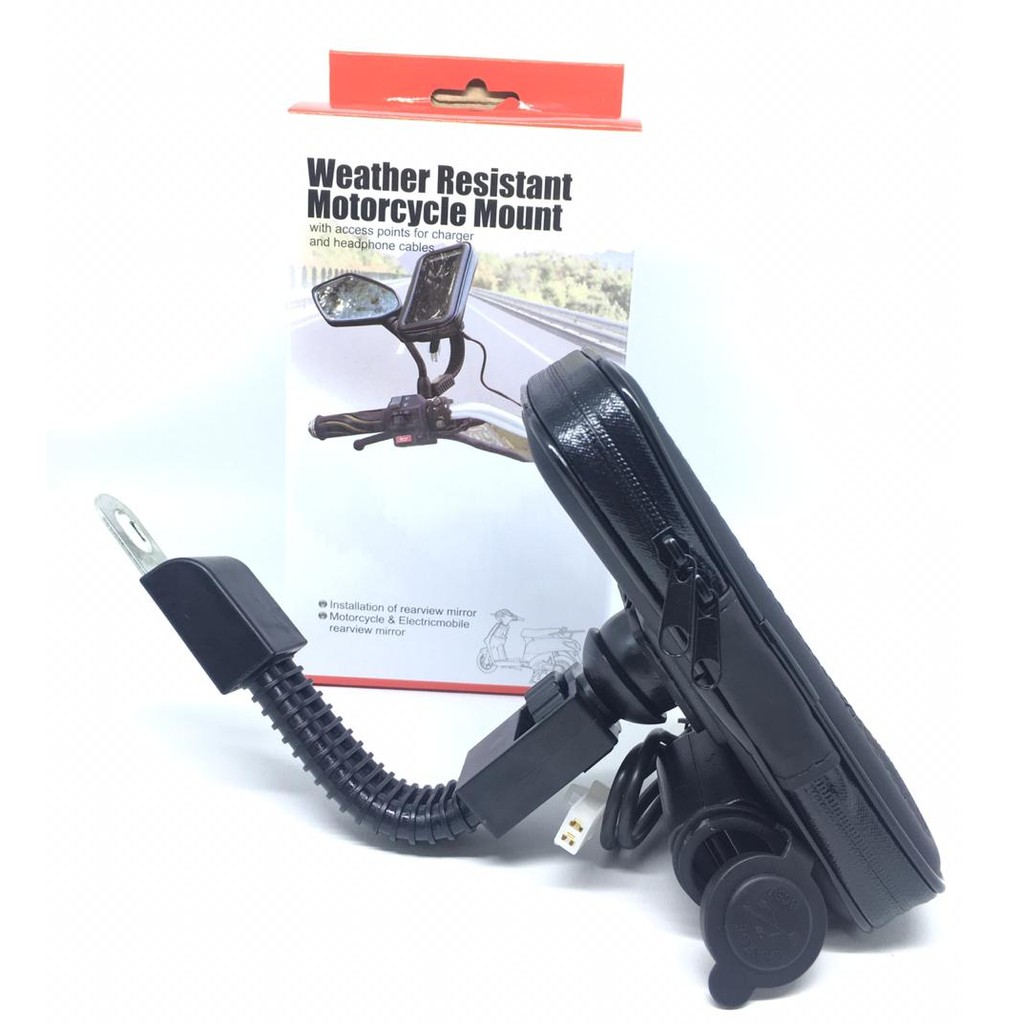 Phone Holder Spion Motor / Holder HP Waterproof Plus USB Charger Universal Handphone